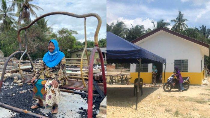 Rumah baru itu dibangun di atas lahan asli rumah Mek yang terbakar pada 10 Maret lalu karena konsleting.