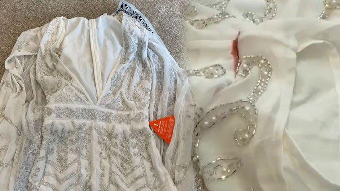 Seorang wanita kaget temukan noda darah mengering di bagian selangkangan pada gaun pengantin yang dipesannya secara online.