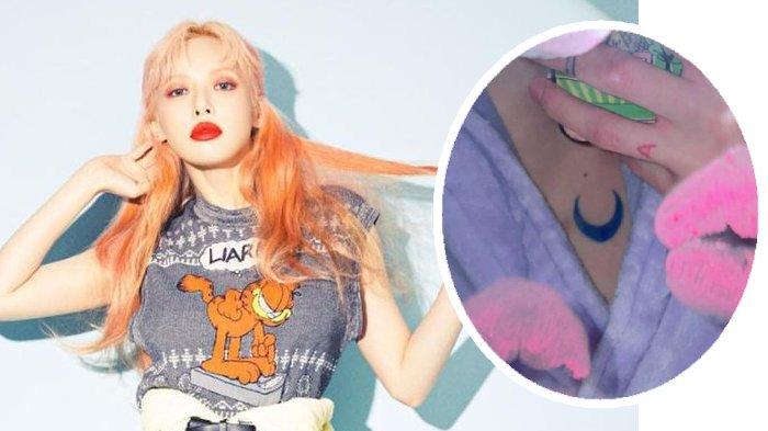 Melalui foto-foto di Instagram, Hyuna menunjukkan tato bulan sabit biru di dadanya yang menarik perhatian penggemar.