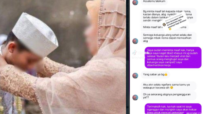 "Saya sudah meminta maaf kak, hanya saja saya tiba-tiba kasus ini yang sudah selesai 1 bulan lalu menjadi viral dan semua orang menghujat saya dan keluarga saya sampai-sampai saya diberhentikan kerja," jawab RZ.
