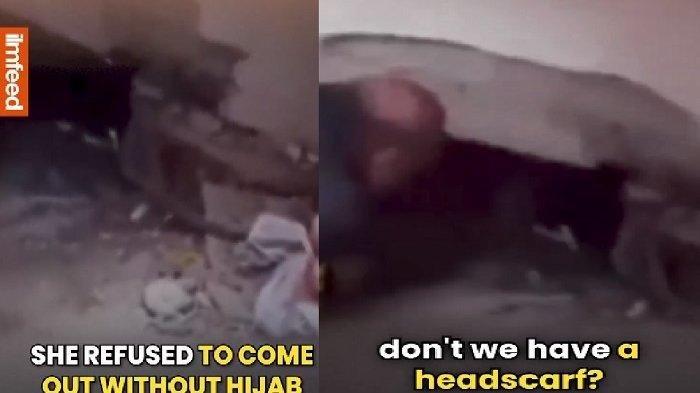 Wanita tersebut menolak keluar dari puing-puing bangunan lantaran tak menggunakan hijab.