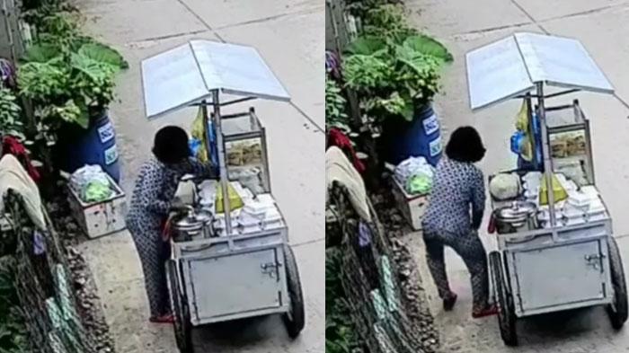 Aksi meresahkan seorang emak-emak penjual makanan terekam CCTV, tampak menempelkan dagangan ke paha dalam.
