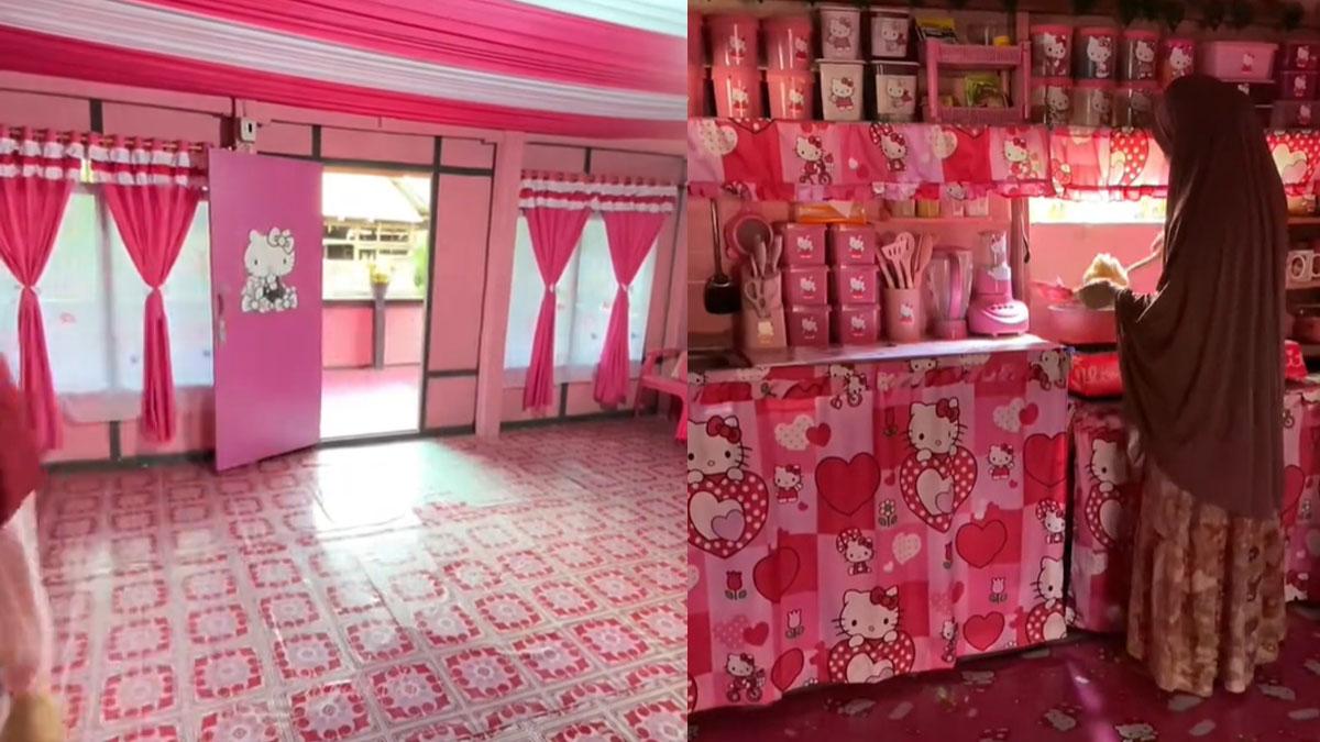 Viral rumah dengan dekorasi unik, beda dari rumah kebanyakan orang, pemilik mendekorasi rumahnya dengan tema Hello Kitty