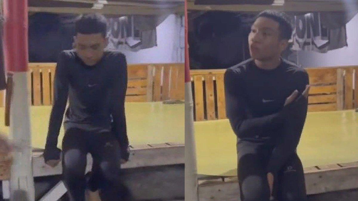 Dalam video yang beredar, tampak pria yang memakai setelan olahraga berwarna hitam diamankan oleh warga.