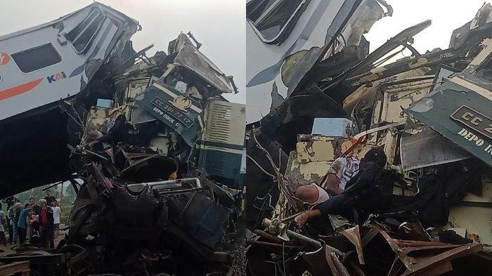 Begini situasi setelah terjadi tabrakan ngeri KA Turangga dan KA Commuter Bandung Raya, dua lokomotif adu banteng.