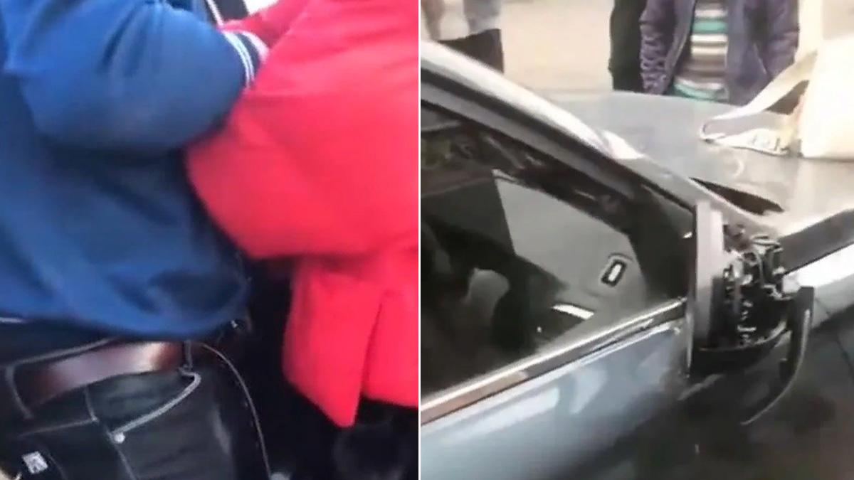 Setelah ditangkap di tempat kejadian, sang suami tidak berani turun tetapi kemudian orang yang lewat membantu sang istri membuka pintu mobil.