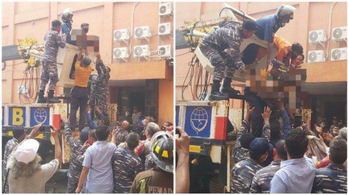 Beberapa orang ada yang menyelamatkan diri naik ke rooftop. Beberapa pemandu lagu terlihat masih memakai tanktop.