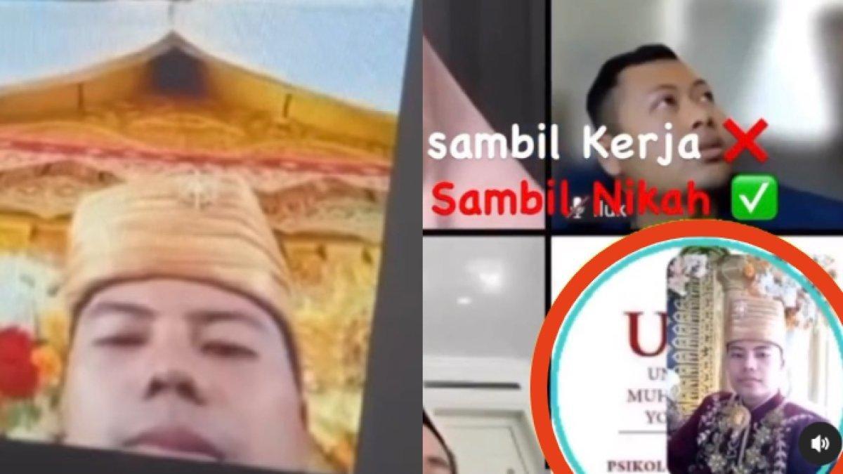 Viral di media sosial sebuah video yang memperlihatkan pengantin pria tetap mengikuti perkuliahan meski sedang menikah.