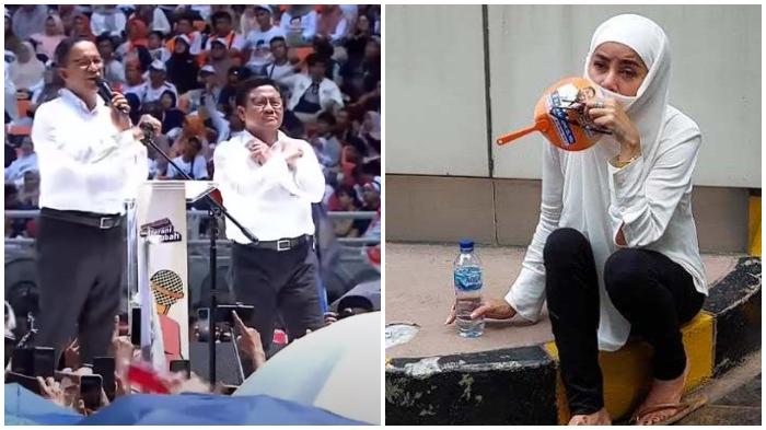 Ikut kampanye akbar AMIN, Olla Ramlan ambruk usai jalan kaki hingga naik ojek. Rela ngemper di jalanan pakai jepit dan wajahnya pucat.