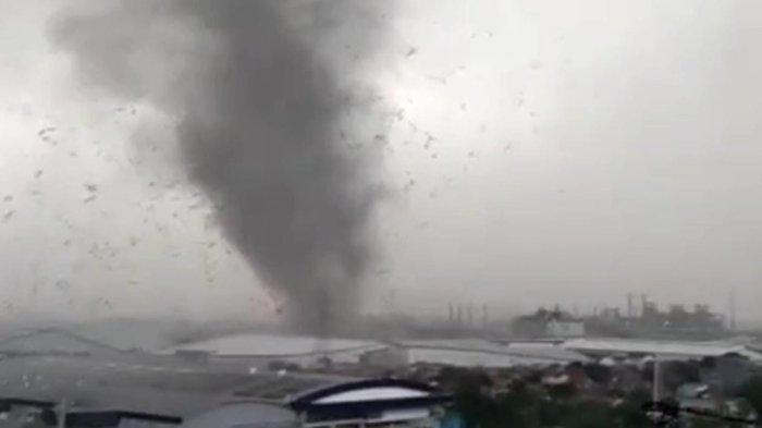 Angin puting beliung menerjang wilayah industri dan permukiman warga di Sumedang, Rabu (21/2/2024).