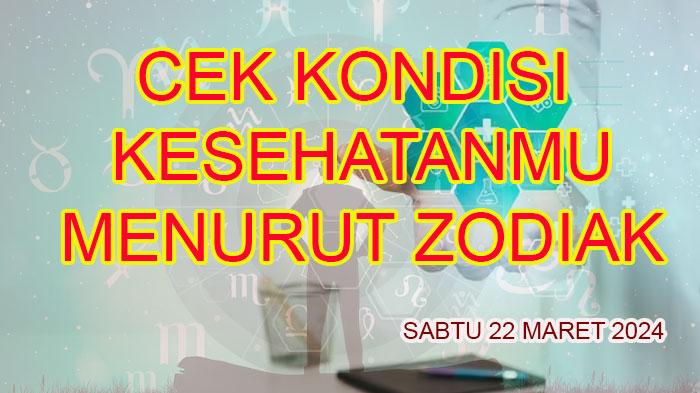 Berikut ini merupakan ramalan zodiak kesehatan besok Sabtu, 23 Maret 2024 untuk Aries, Taurus, Gemini, Cancer, Leo, Virgo, Libra, Scorpio, Sagitarius, Capricorn, Aquarius, dan Pisces.