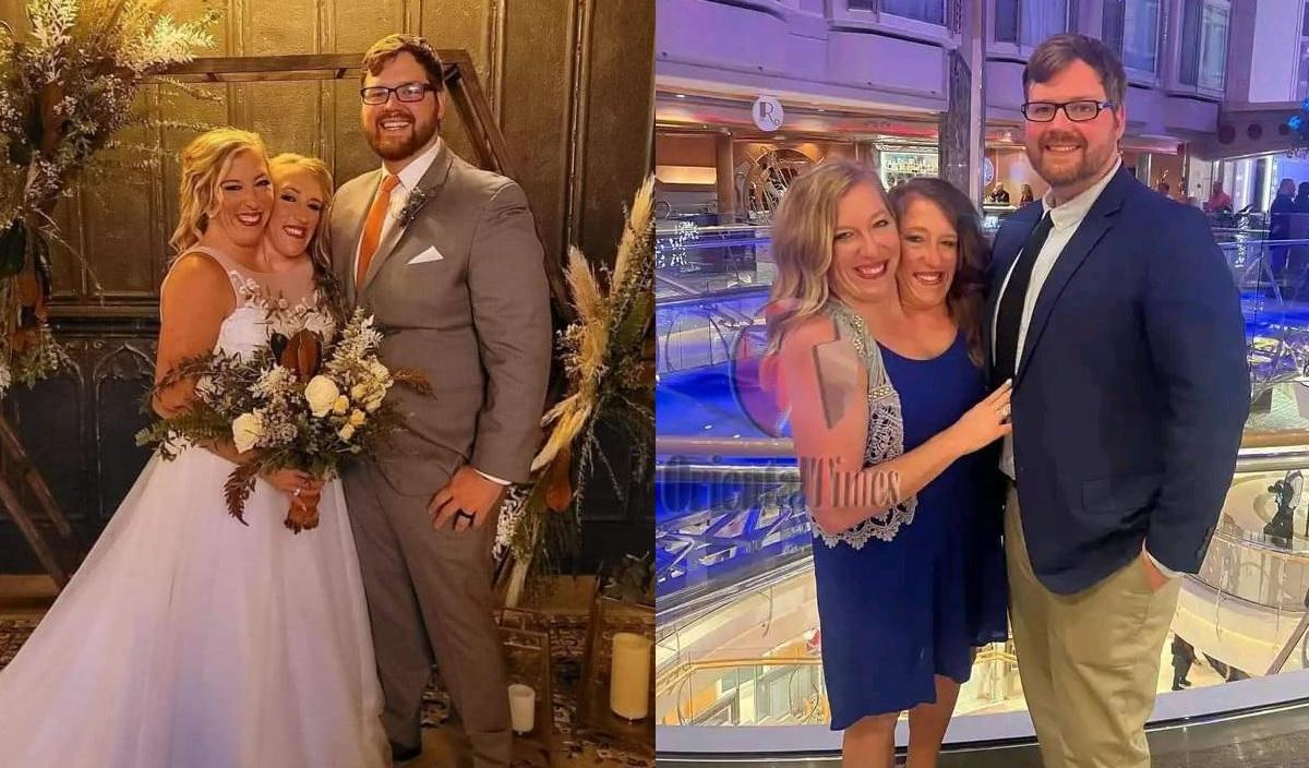 Gambar media sosial dari pernikahan tersebut menunjukkan Abby dan Brittany mengenakan gaun pengantin putih, berdiri di samping dan berpegangan tangan dengan Josh, yang mengenakan setelan abu-abu.