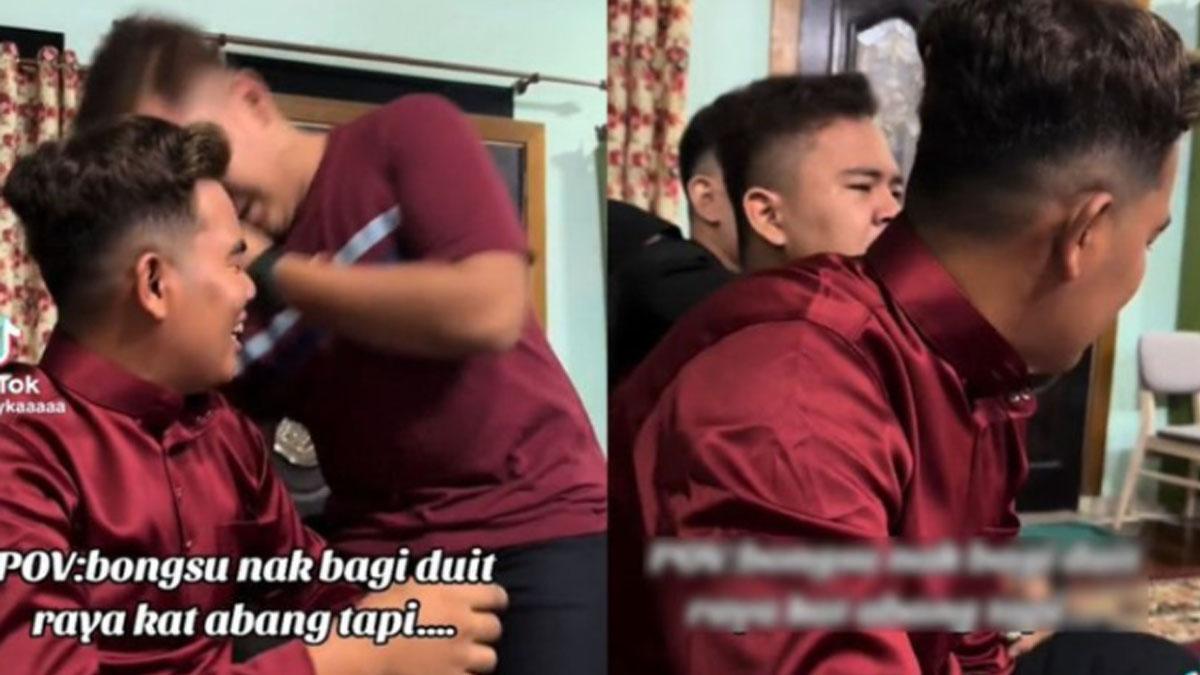 Rekaman tersebut memperlihatkan anak bungsu dalam sebuah keluarga menangis tersedu-sedu sambil menyerahkan amplop berisi uang raya kepada saudaranya!