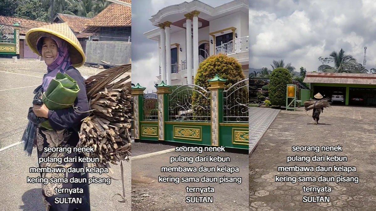 Nenek yang viral mengenakan caping dan berpakaian sederhana itu ternyata tinggal di rumah mewah bak istana.
