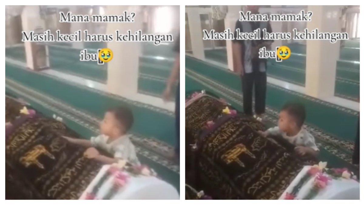 Bocah balita laki-laki ini belum paham kalau ibunya meninggal dunia sehingga ia terus-terusan memanggil mamanya.