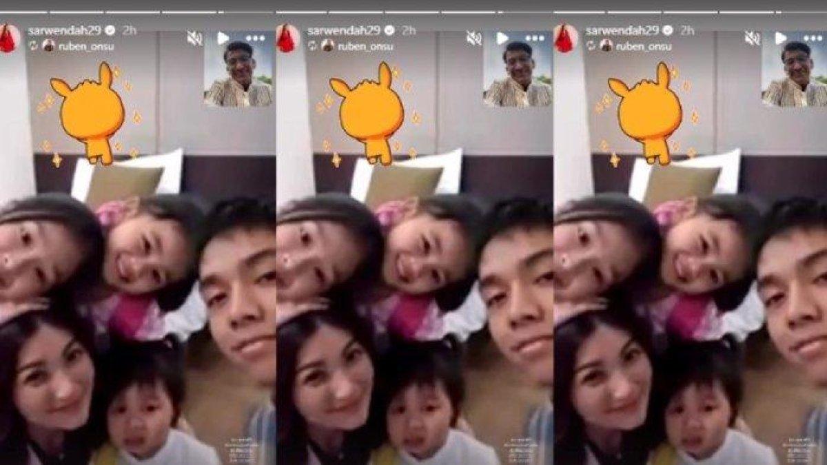 Momen Ruben Onsu video call bareng anak-anak termasuk Betrand Peto diunggah Sarwendah melalui Instagram Story sang artis.