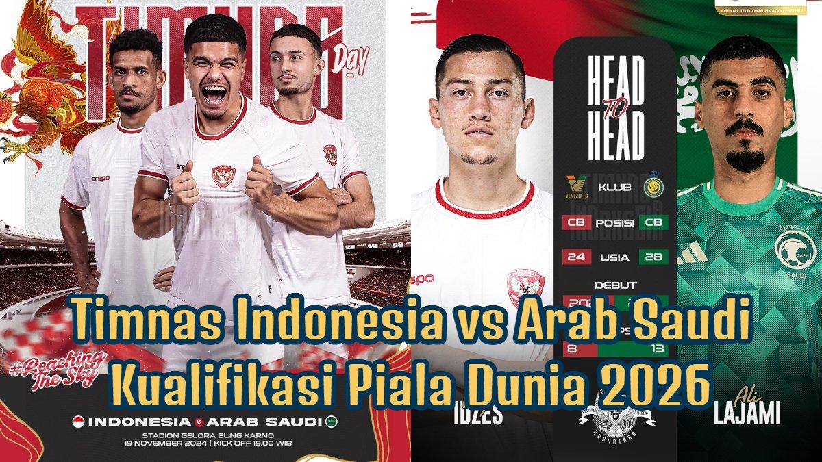 Duel antara Timnas Indonesia vs Arab Saudi di Kualifikasi Piala Dunia 2026 Zona Asia ini akan kick-off pada jam 19.00 WIB malam nanti.