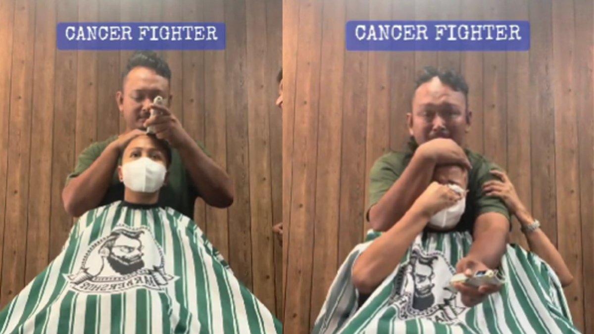 Viral momen haru seorang suami mencukur habis rambut kepala sang istri karena sakit kanker, si pria nangis kemudian cukur rambut sendiri