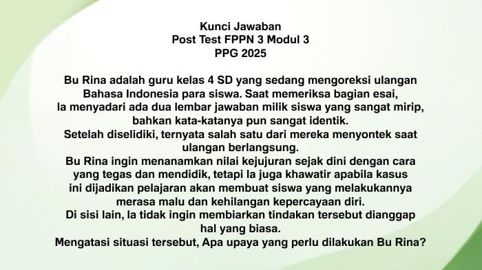 Kunci jawaban Post Test Modul FPPN 1, 2, dan 3 PPG 2025 yang membahas Filosofi Pendidikan dan Pendidikan Nilai, di Ruang Guru dan Tenaga Kependidikan.