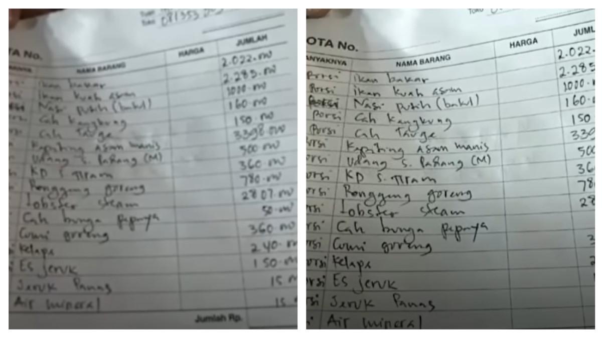 Tak butuh waktu lama, kehebohan ini memaksa pihak pedagang angkat bicara, memberikan klarifikasi versi mereka menyusul viralnya nota tulisan tangan dari warungnya.